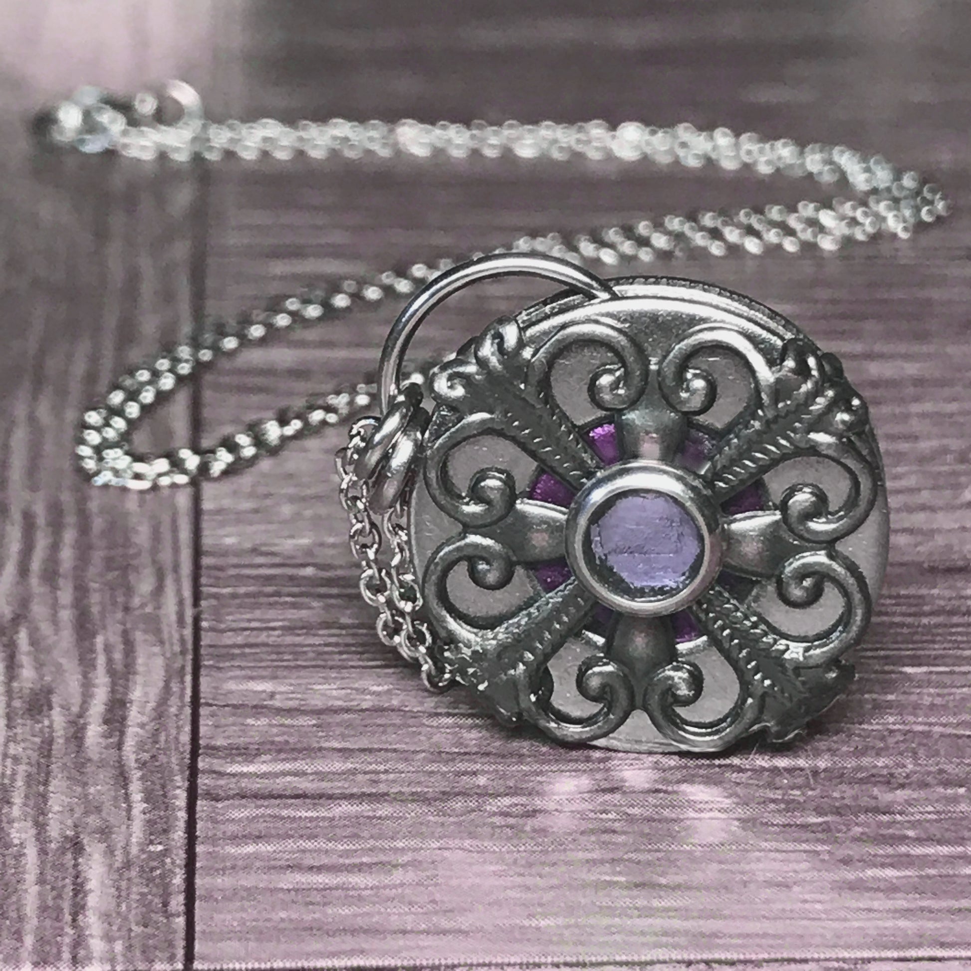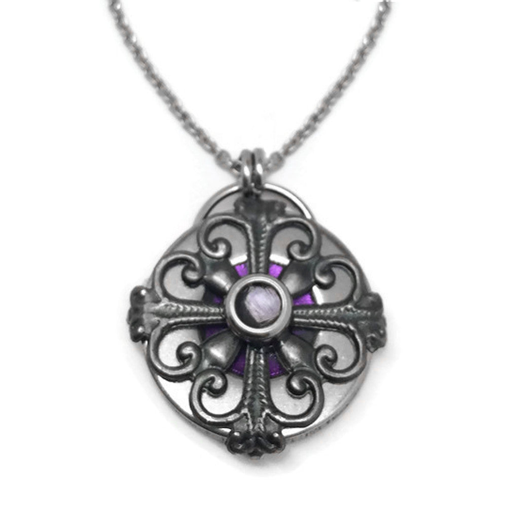 Steel Filigree Purple Circle Necklace - As Seen on The Vampire Diaries