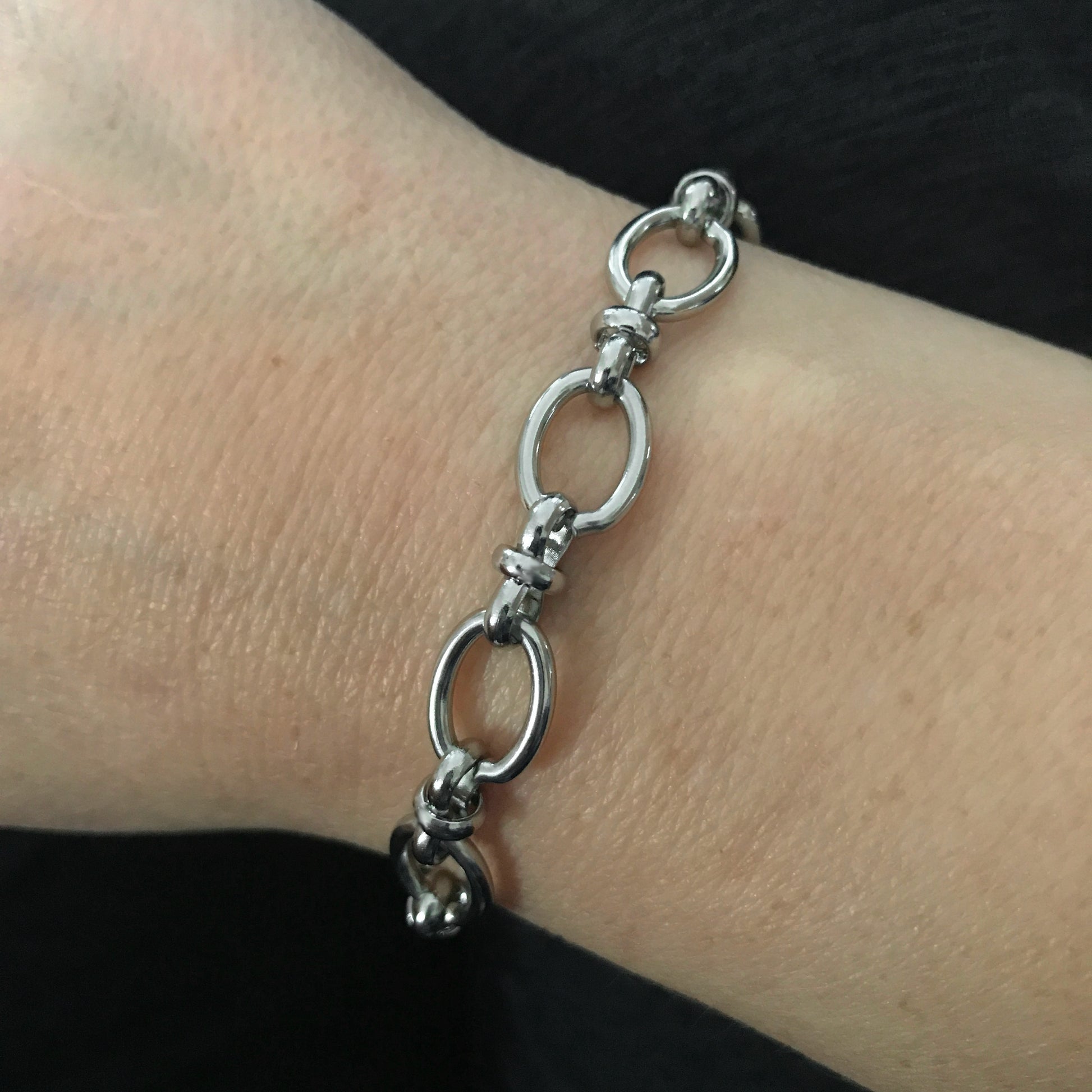 This jaw-dropping, 1/2 inch wide stainless steel bracelet is a show-stopper! Perfect for wearing solo or as part of a layered look. Measuring 7.5 inches long, this accessory is comfy for women's wrists 6.5 inches and under - but if you need a larger size, just reach out! Plus, stainless steel ups the ante with extra durability and a gleam that'll never tarnish!