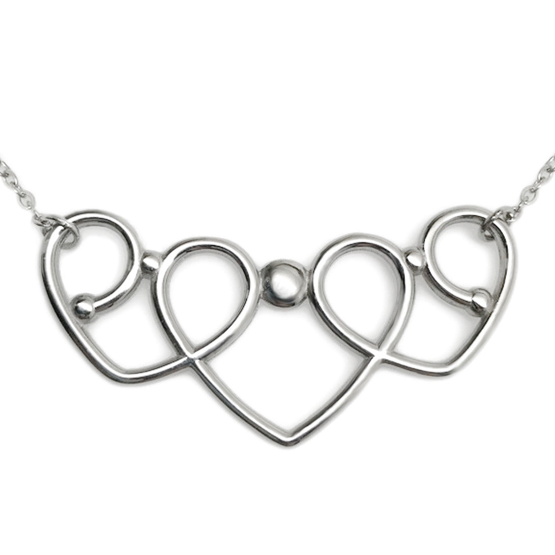 This unique heart necklace is truly one she will cherish and it will last a lifetime.  The handcrafted design features 3 interlinked hearts made from thick round stainless steel wire polished to a mirror finish.  The heart in the center is slightly larger than the ones on either side making this a great gift for a mom of two or three kids.