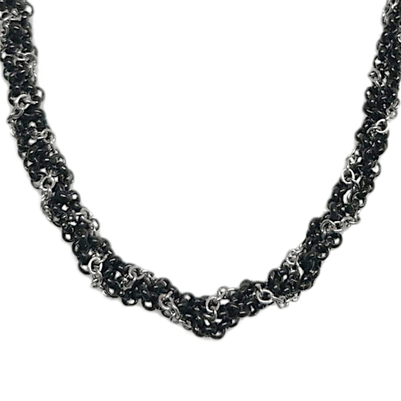 Braided Black and Silver Metal Necklace Chain (5mm)