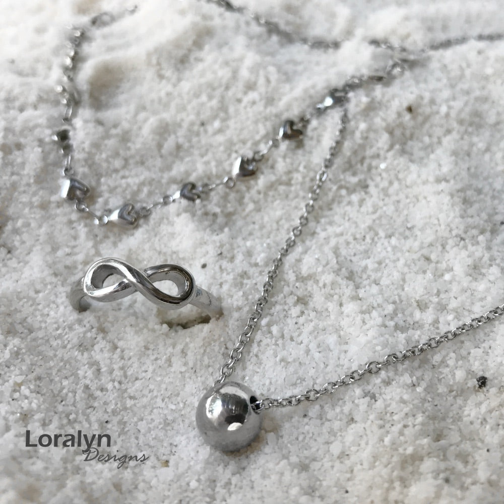 Beautiful minimalist style can be found in this silver stainless steel (color, not plated), one bead necklace! Such a versatile piece of jewelry that you can wear in any setting.  Even better, it is made from stainless steel so it will never tarnish and is great for people with skin allergies to other metals.