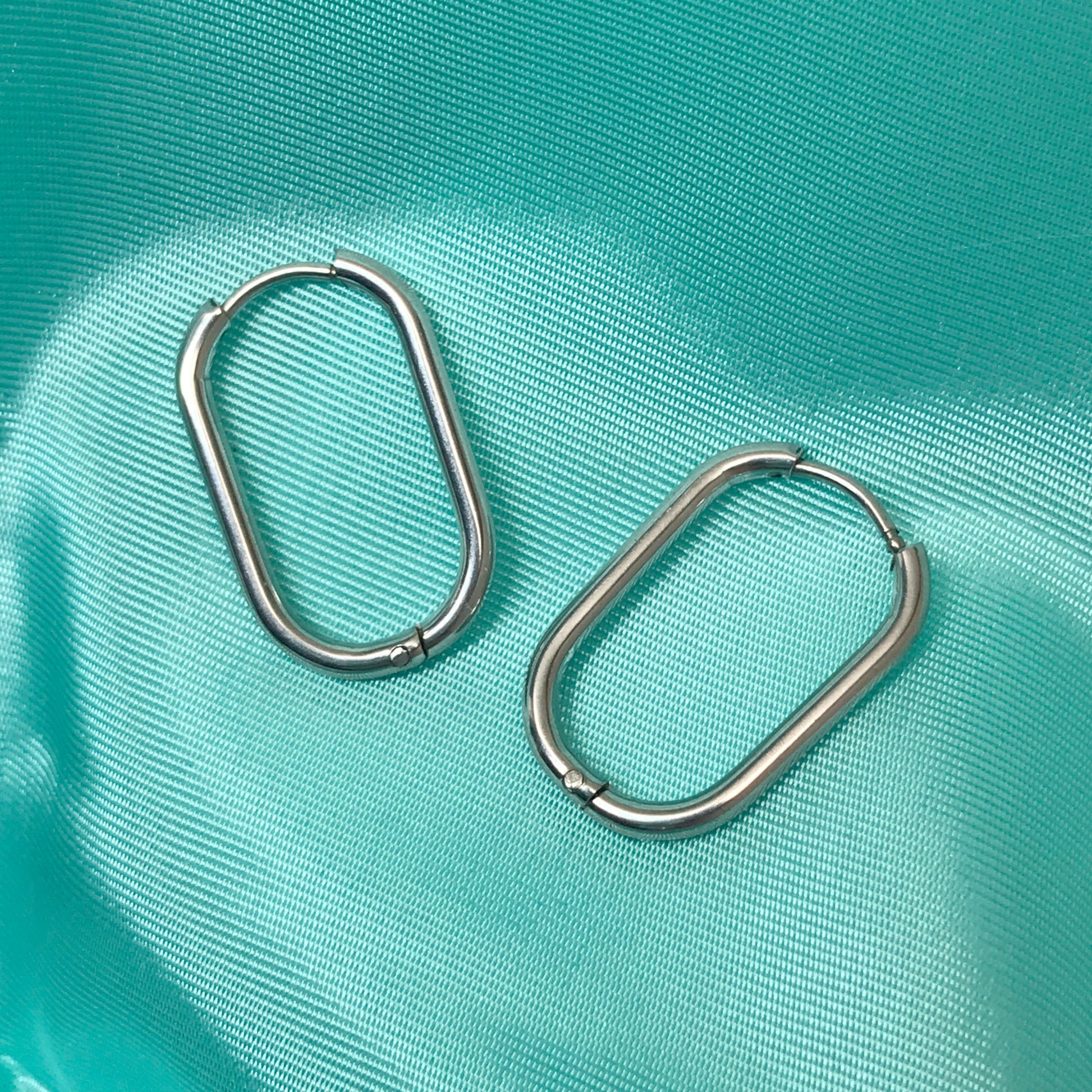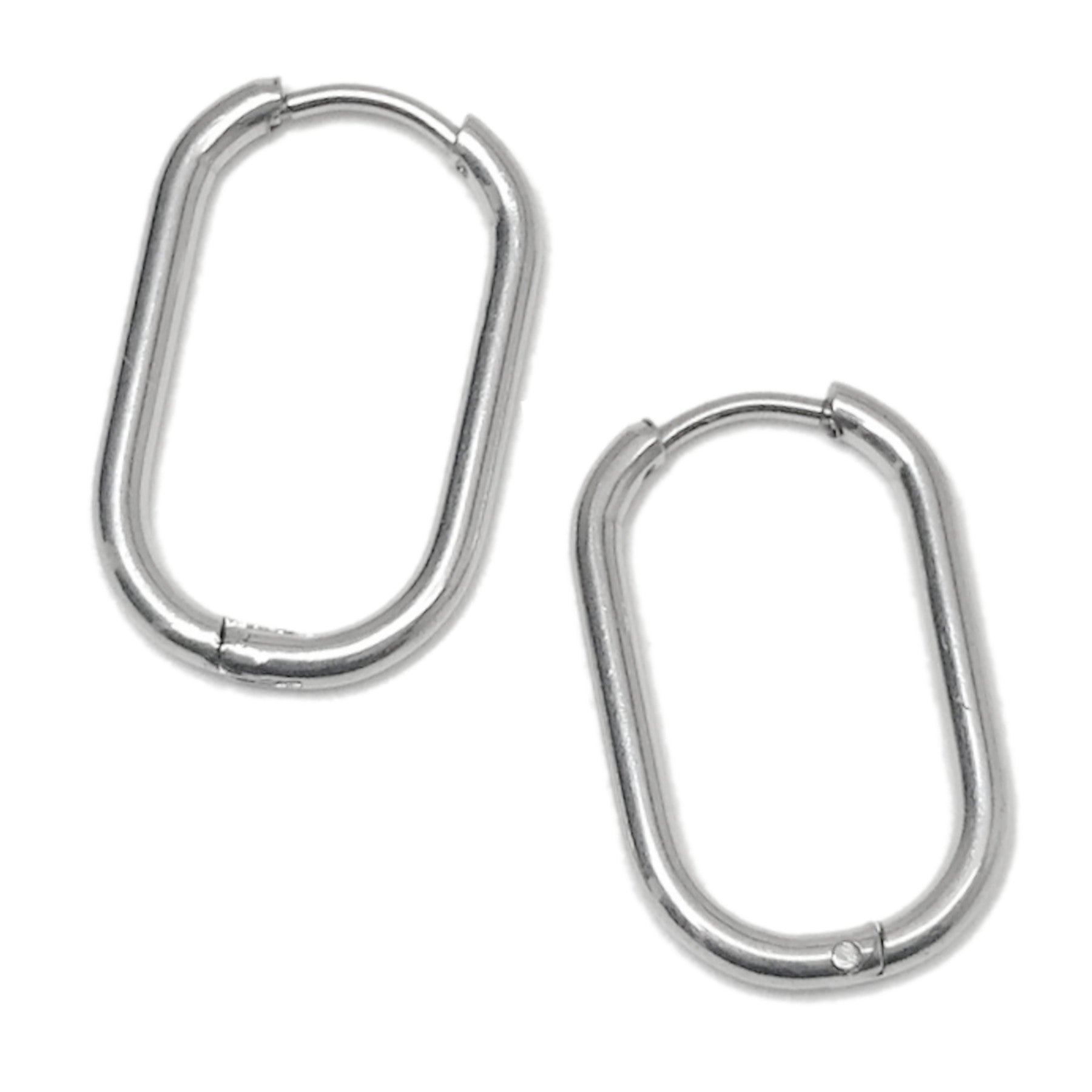 These small stainless steel black chain link huggie earrings are so easy to wear without any discomfort. Measuring just under 1 inch long (.9 inches) by 1/2 and inch wide, they're suitable for both men and women. Made from 316L stainless steel, they're incredibly durable, waterproof, and will never lose their shine. The hinged design and easy click top make for effortless wear and ensure they stay securely in your ears. Available in black or silver, they add a minimalistic touch to any outfit. Whether worn alone or paired with studs, these earrings are a great choice for multiple ear piercings.