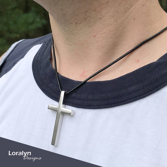 Large Mens Plain Cross Pendant Necklace - Steel Chain